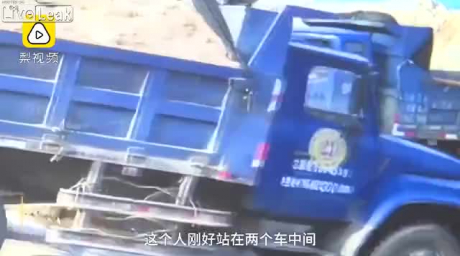 Ściśnięty przez dwie ciężarówki